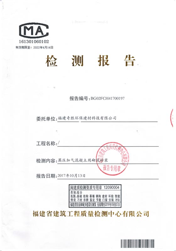 New high-precision aerated block (concave-convex type) test report